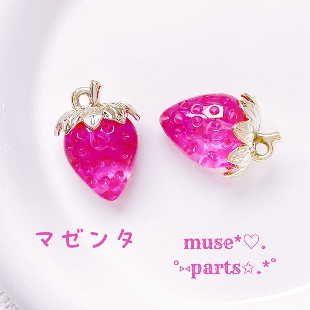 このキュートな苺チャームは、ほんのりオーロラの輝きがあり、