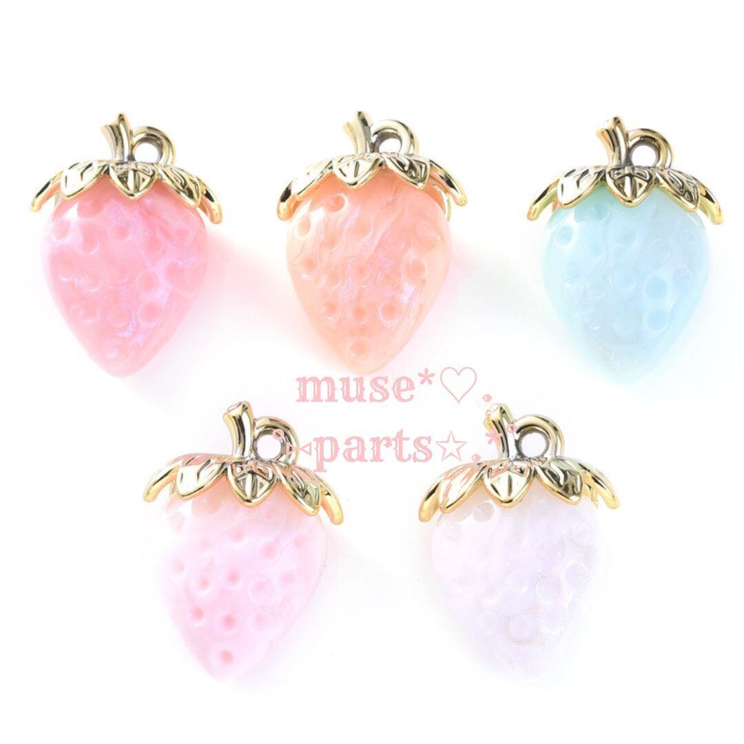 苺 いちごチャーム オーロラ AB ラメ クリア パール スイーツデコパーツ ハンドメイド アクリル ヘアアクセサリーゴム ブレスレット バッグチャーム 着物 和装 花 春 母の日 子供 フルーツ 資材 手芸 DIY ピンク パステルカラー【クリアタイプ】2個