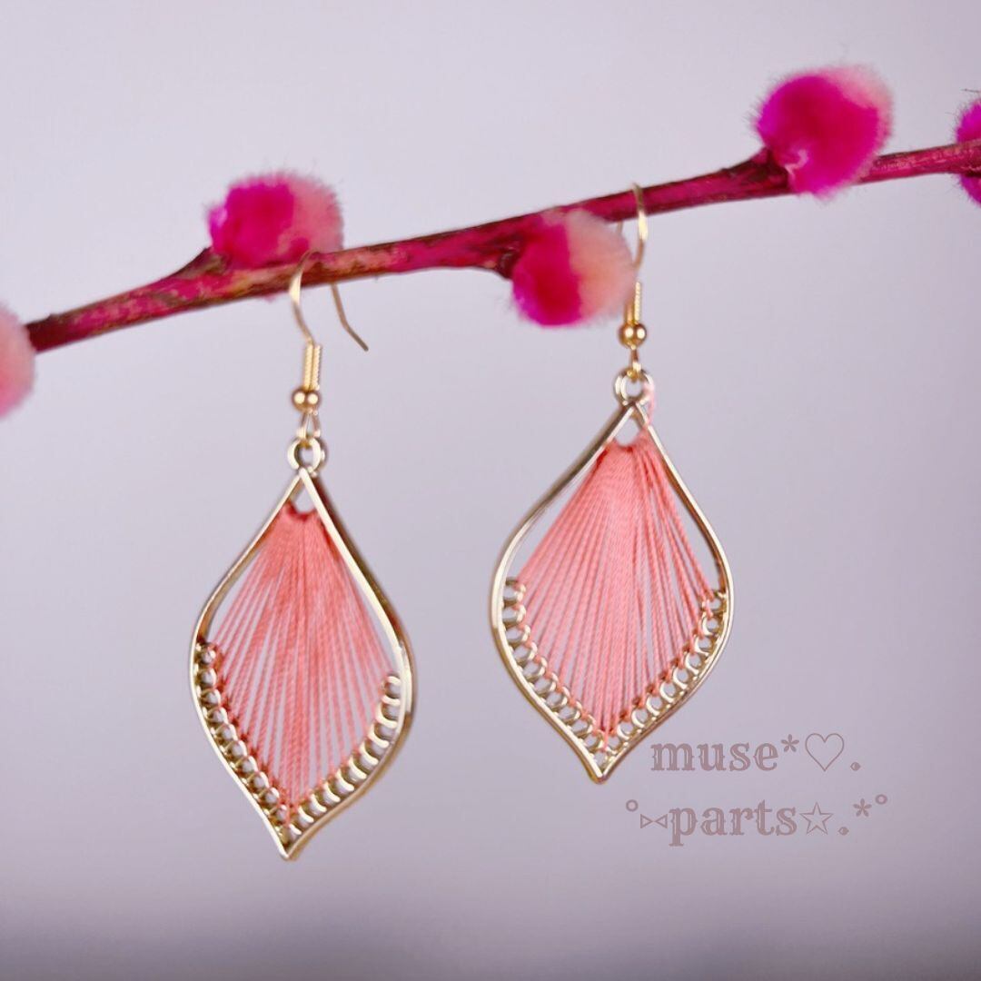 【即納】ホワイト/レッド/ブラック/ピンク/サーモンピンク/ワインレッド ハープチャーム リーフチャーム 刺繍糸チャーム 白 赤 黒 桃色 オレンジ ルージュ オフホワイト ゴールドフレーム ハロウィン クリスマス しずく 雫 天使の羽根 葉 花 雪の結晶 ピアス イヤリング ハンドメイドパーツ 手芸材料 資材 ボタニカル 2個