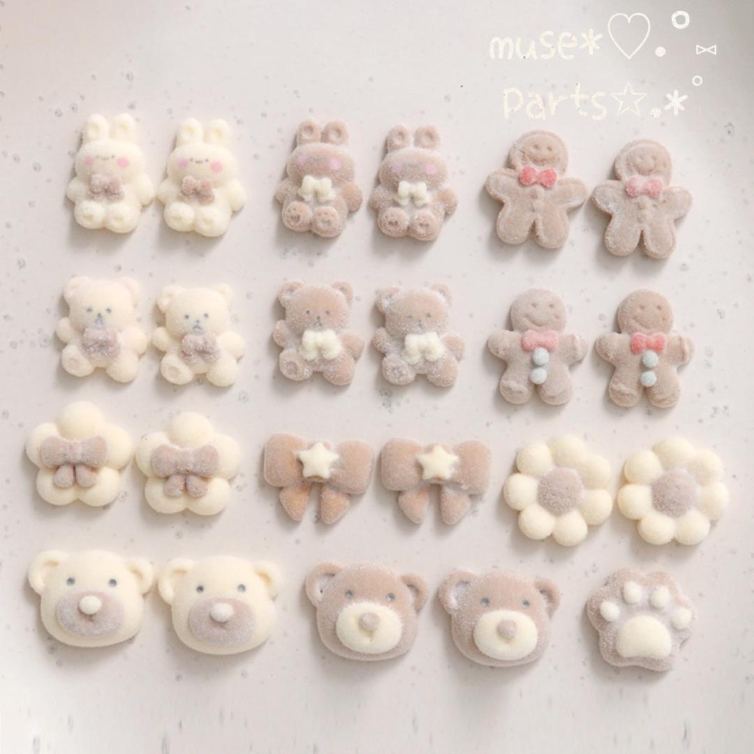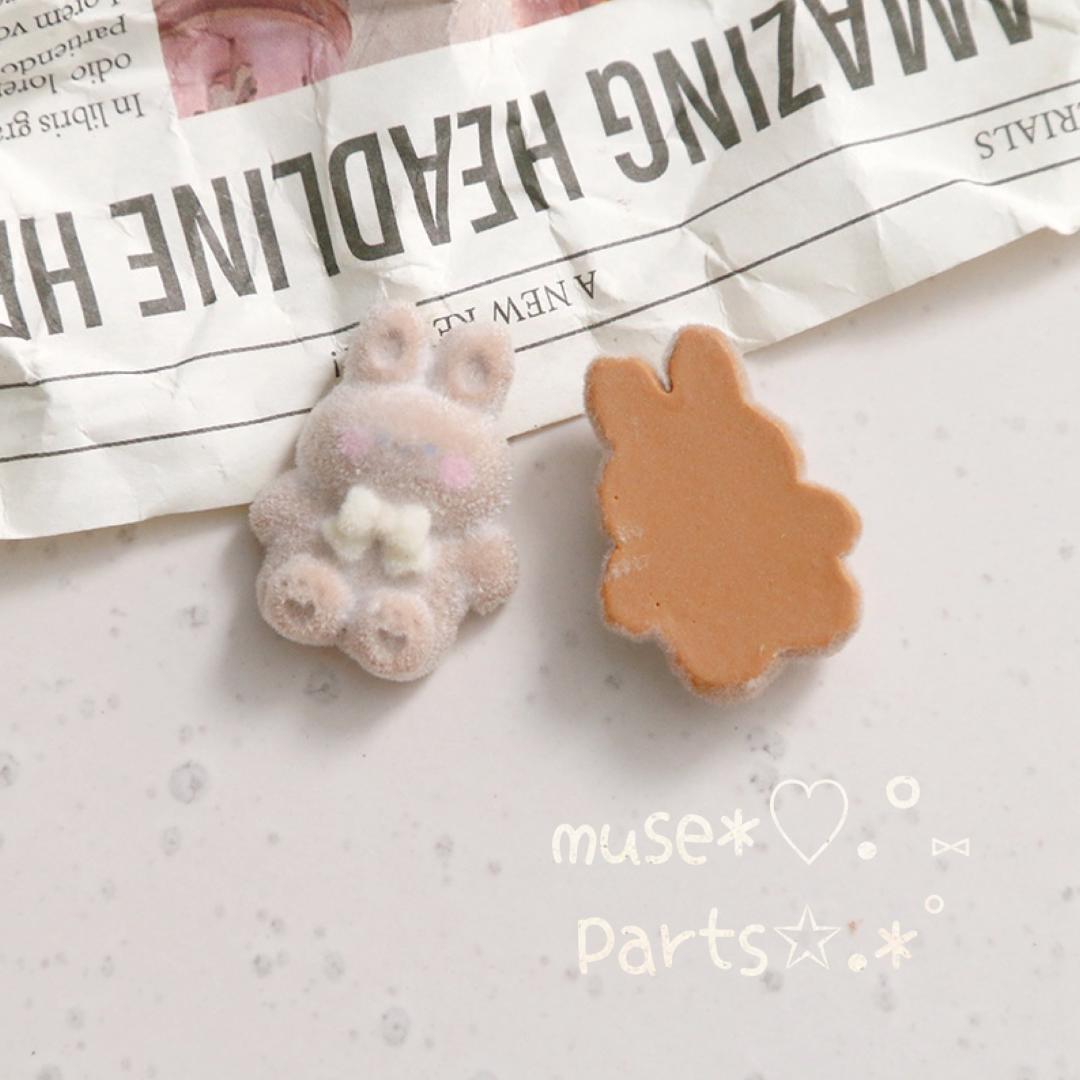 わずか♥4個茶色うさぎフロッキーカボション♥デコパーツ クッキー お菓子 兎ぬいぐるみ バレンタインデー ホワイトデー スノーボールクッキー お菓子 珈琲チョコレート レトロ 貼り付けパーツ