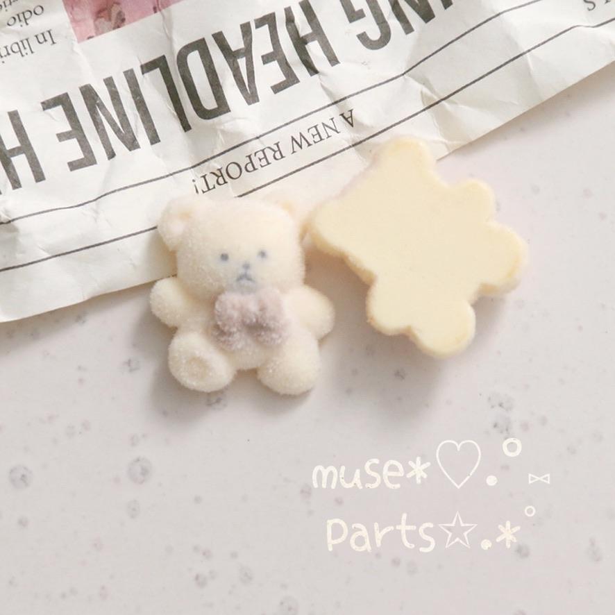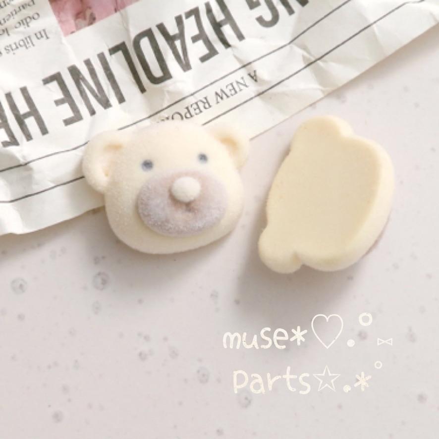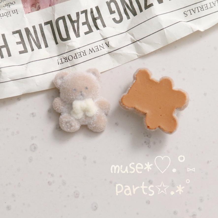 4個ココアくまの肉球フロッキーカボション♥熊 ブラウンベア デコパーツ クッキー お菓子 ぬいぐるみ バレンタインデー ホワイトデー スノーボールクッキーお菓子 ホワイトチョコレート 貼り付けパーツ