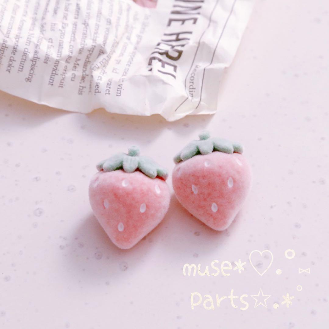 4個いちごフロッキーカボション♥苺 デコパーツ ぬいぐるみ バレンタインデー ホワイトデー スノーボールクッキー お菓子 ストロベリーチョコレート レトロ 貼り付けパーツ