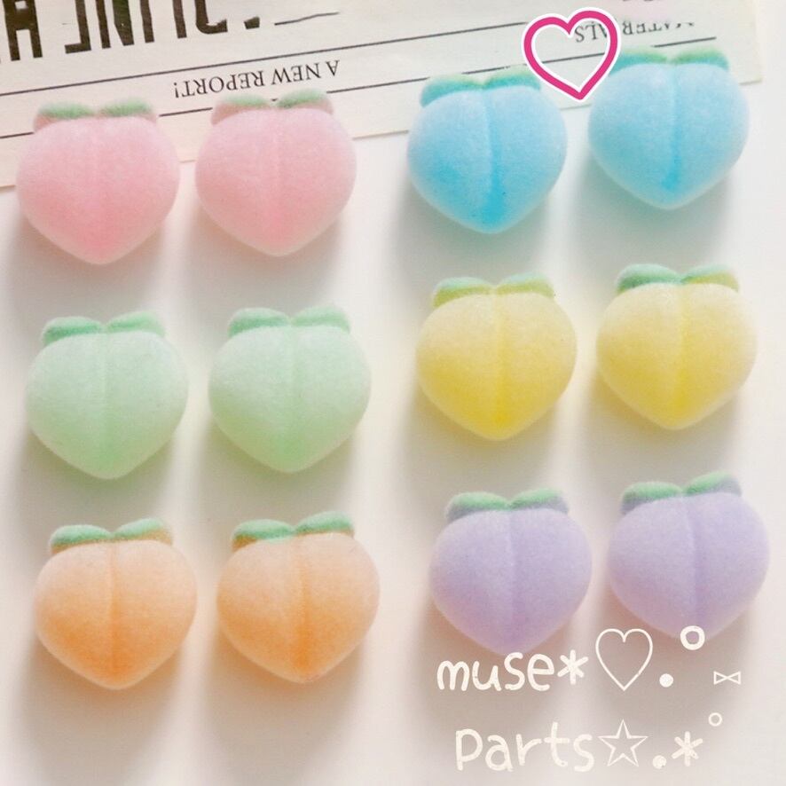 4個桃 ラムネ フロッキーカボション♥水色 青 ライトブルー もも デコパーツ ゆめかわいい ホワイトデー スノーボールクッキー お菓子 グミ レトロフルーツ ミニチュア 貼り付けパーツ