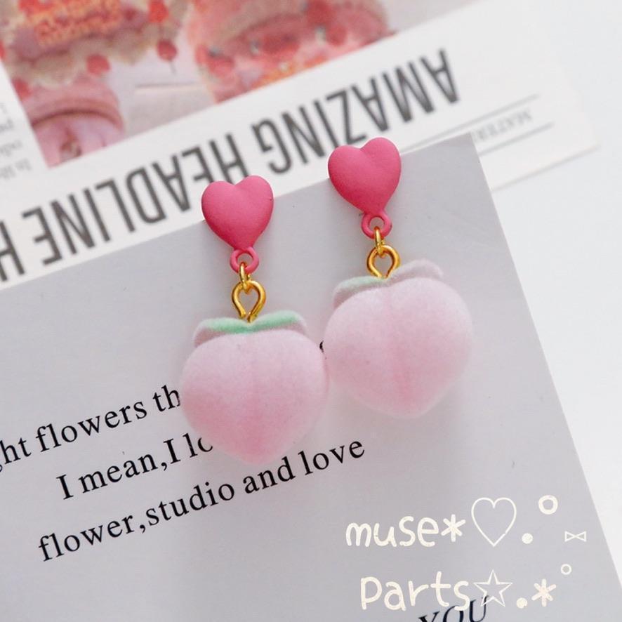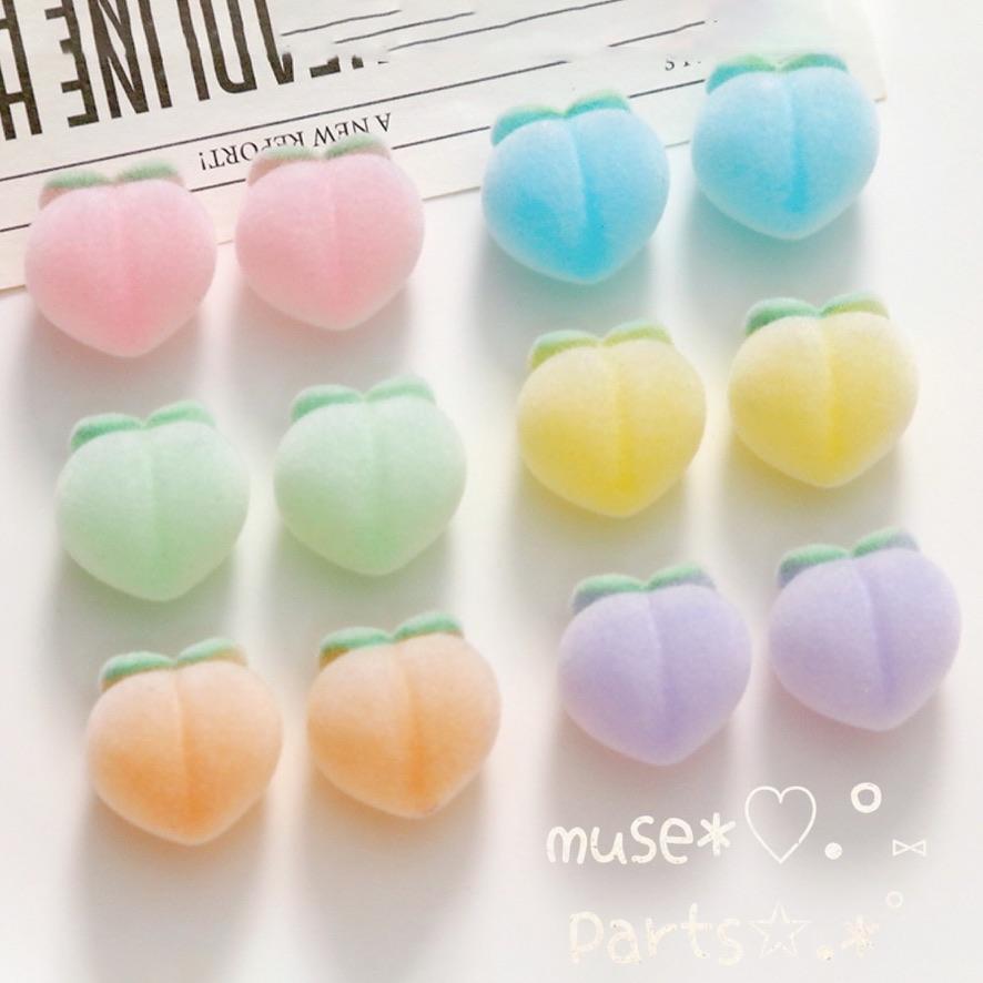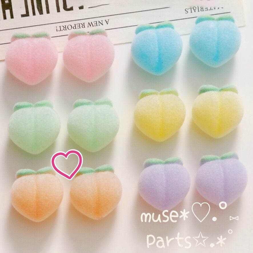 4個桃 オレンジ色 フロッキーカボション♥だいだい色 橙色 もも デコパーツ ゆめかわいい ホワイトデー スノーボールクッキー お菓子 グミ レトロフルーツ ミニチュア 貼り付けパーツ