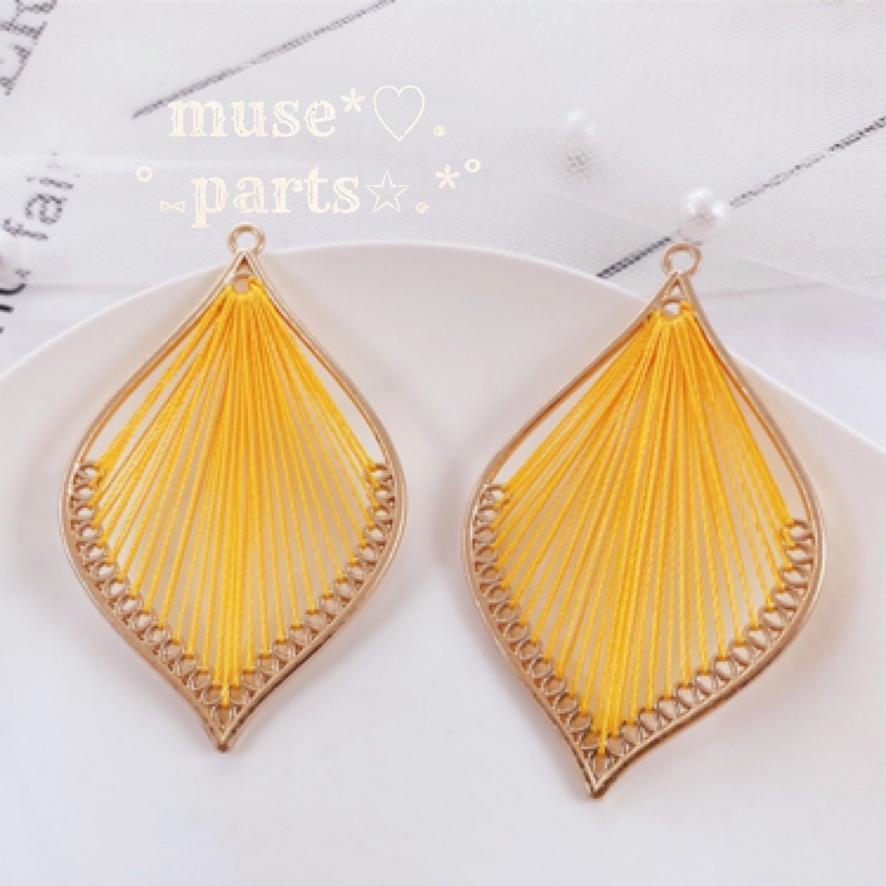2個 さくら♥大ハープチャーム リーフチャーム♥桜色 ライトピンク ゴールドフレーム 刺繍糸チャーム♥桃色 ゴールドフレーム しずく 雫 羽根 雪の結晶 葉っぱ 花 ボタニカル フラワーパーツ♥浴衣