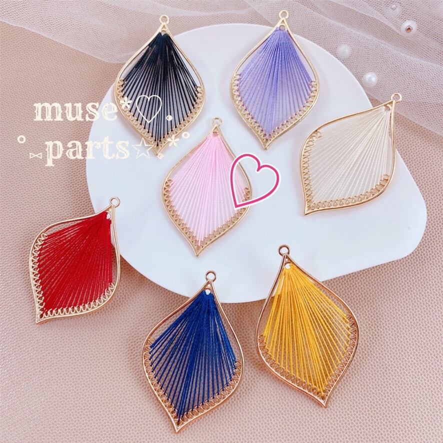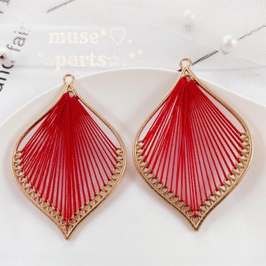 2個 ピンク♥大ハープチャーム リーフチャーム♥ももいろ ゴールドフレーム 刺繍糸チャーム♥桃色 ゴールドフレーム しずく 雫 羽根 雪の結晶 葉っぱ 花 ボタニカル フラワーパーツ♥浴衣