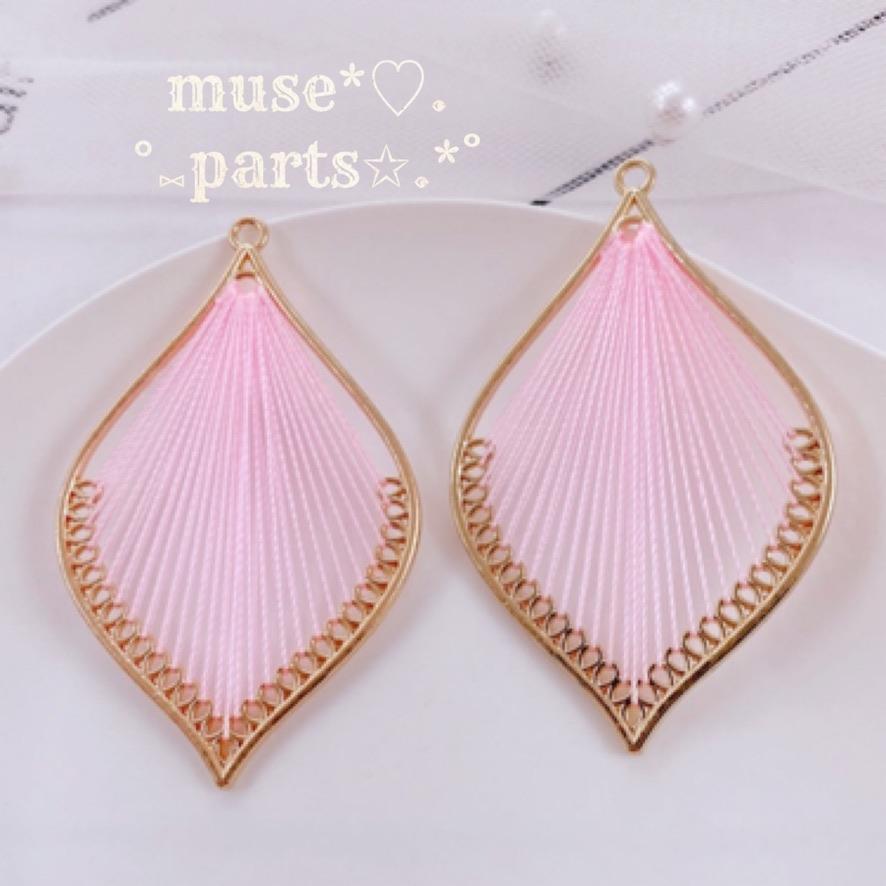 2個 山吹色♥大ハープチャーム リーフチャーム♥オレンジ色 黄色 イエローゴールドフレーム 刺繍糸チャーム♥ゴールドフレーム しずく 雫 羽根 雪の結晶 葉っぱ 花 ボタニカル フラワーパーツ 今人気