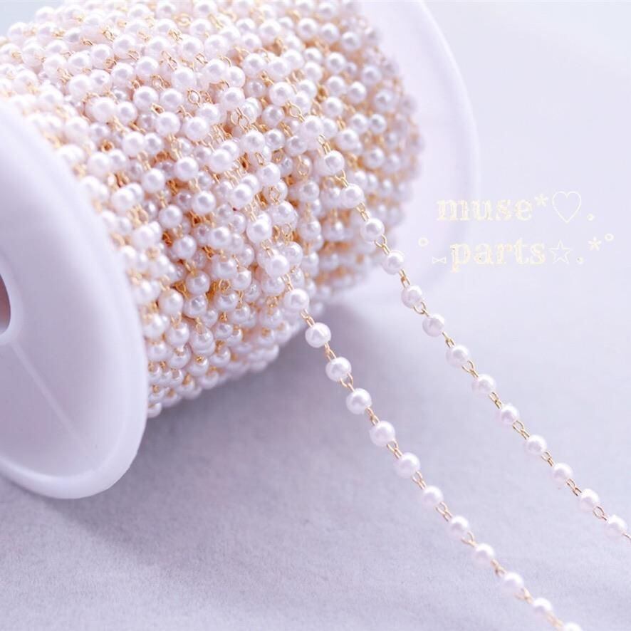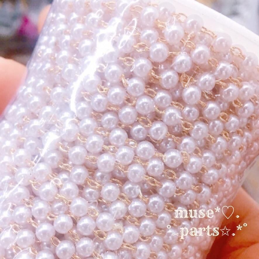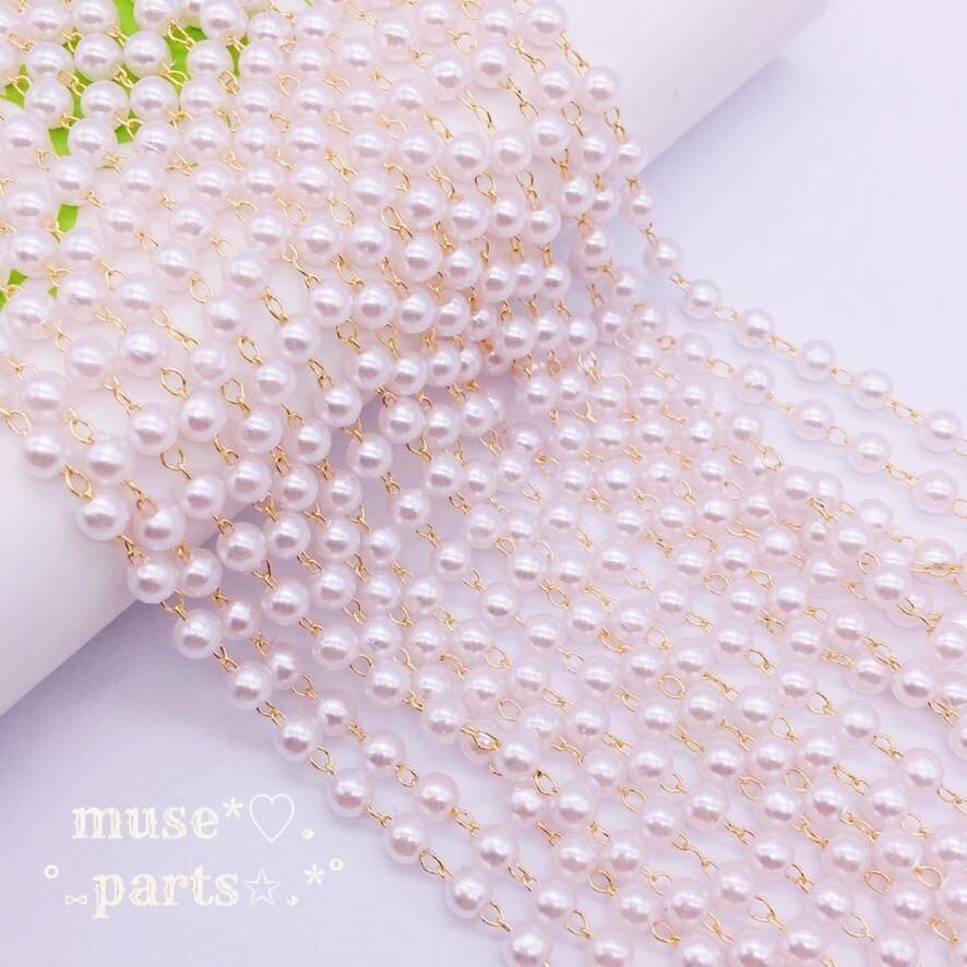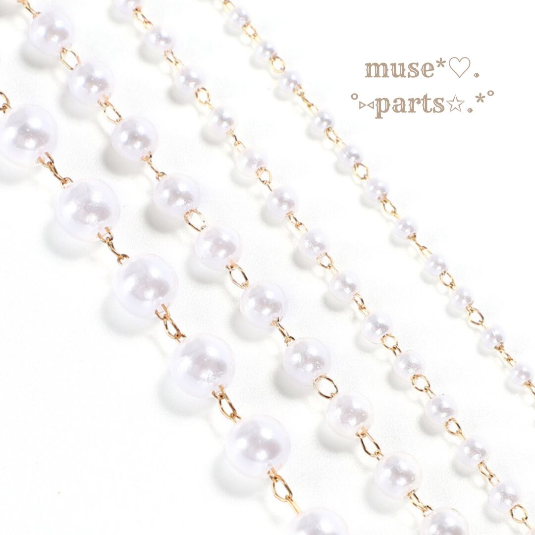 1m単位 3/4/6/8mm KCゴールド パールチェーン ホワイトクリーム 白 100cm 樹脂パール デザインチェーン 華奢 シンプル 軽い ピアス イヤリング スマホ アクセサリー ストラップ あたたかみ 上品 優しいカラー クリスマス 新年 春夏秋冬