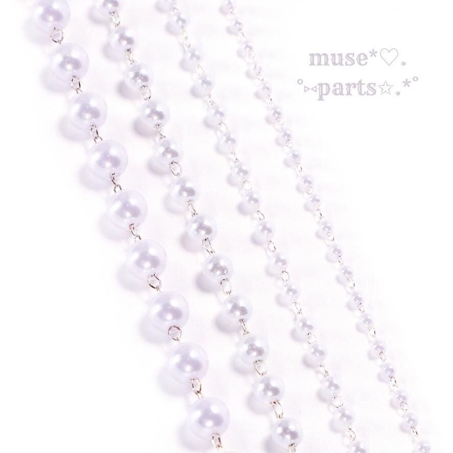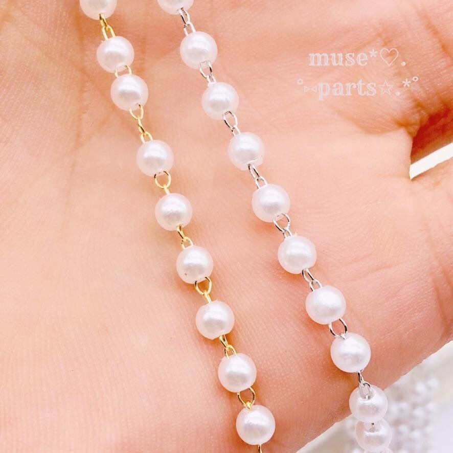 1m単位 3/4/6/8mm ホワイトシルバー パールチェーン 白 100cm 樹脂パール デザインチェーン 華奢 シンプル 軽い ピアス イヤリング スマホ アクセサリー ストラップ あたたかみ 上品 優しいカラー クリスマス 入園式 入学式 春夏秋冬 オ