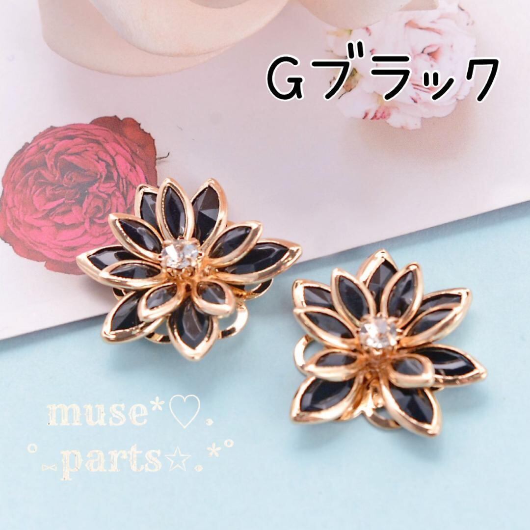 2個 大メタルフラワーパーツ黒×ゴールド メタルフレームとラインストーンフラワーパーツ 24mm蓮ロータス ハロウィン クリスマス 秋桜 コスモス お花 雪の結晶 ブラック
